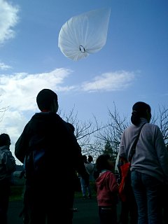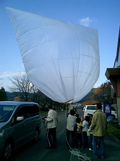子ども劇場のみなさんがお作りになったポリ袋熱気球です。これはスゴイ(・∀・)