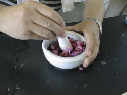 【紫陽花のpH試験】 どんな花の色素でも多かれ少なかれpHが違うと色が変わります。 紫陽花の花びらの色素をメタノールで抽出してpH試験をしてみました。 ご覧のように見事に色が変わります。 バラでもパンジーでもできます。 |